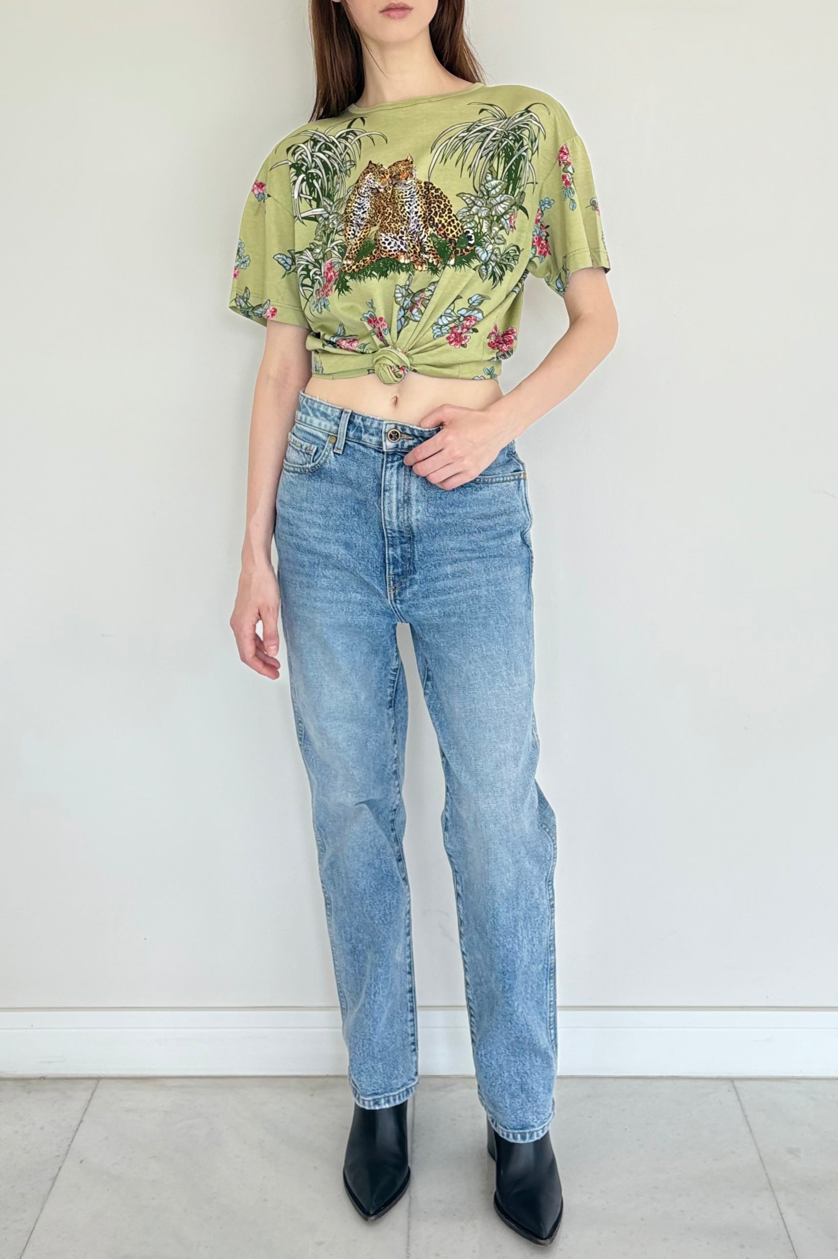 Eye-catching vintage Hermès tee with an all-over leopard motif.