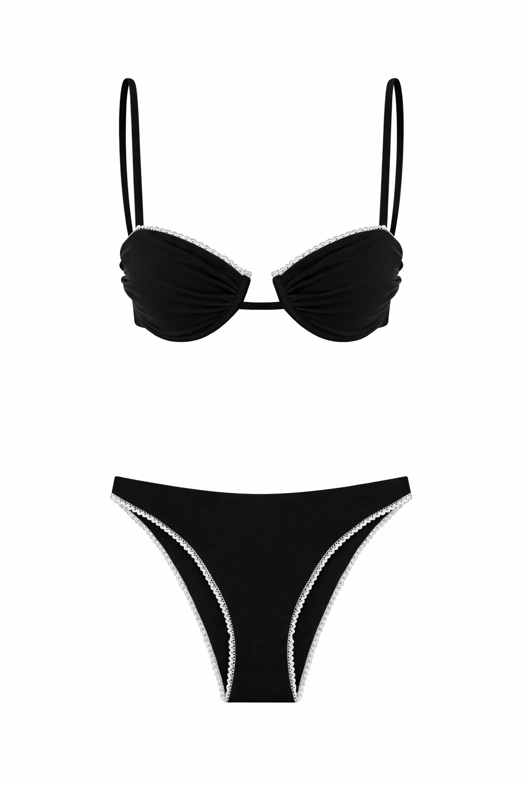 Offering a feminine and elegant look, this bikini set features an underwire top that provides support and enhances the natural shape. Delicate lace trim details add a romantic touch, while the minimal cut and body-hugging fit create a look that is both stylish and comfortable for beach days.