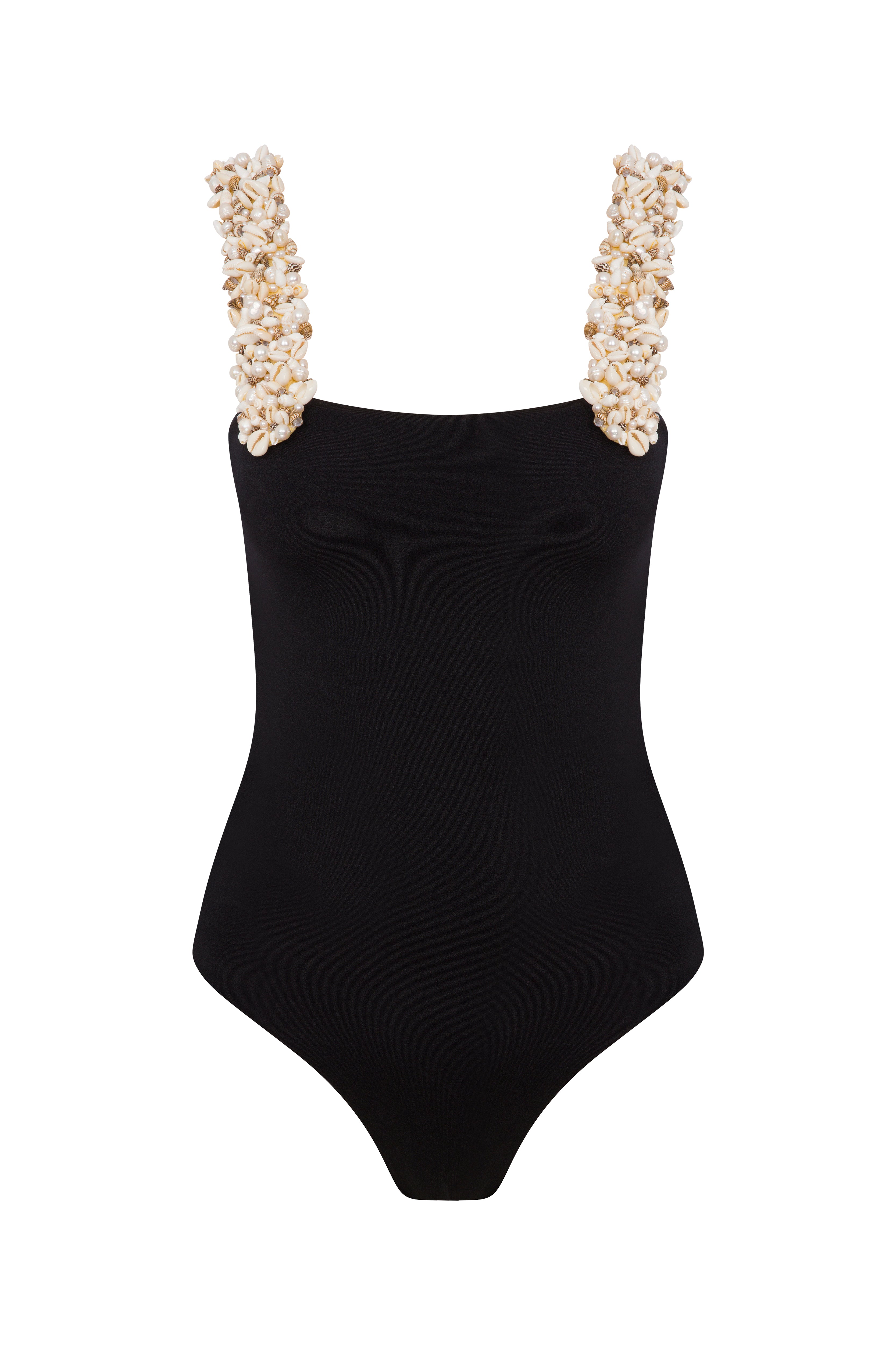 Pearl Embellished Wide Strap Swimsuit